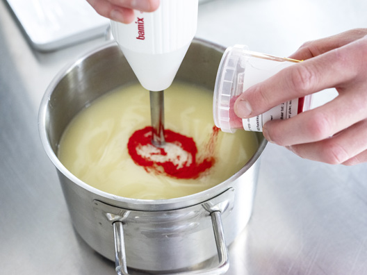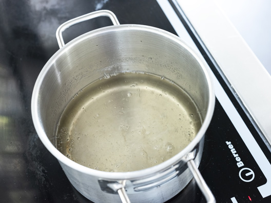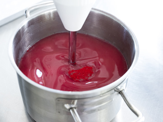 Bring the sugar, glucose, and water to a boil. Then add the gelatin and continue boiling until dissolved. Tip: Use 1 part gelatin per 5 parts water.