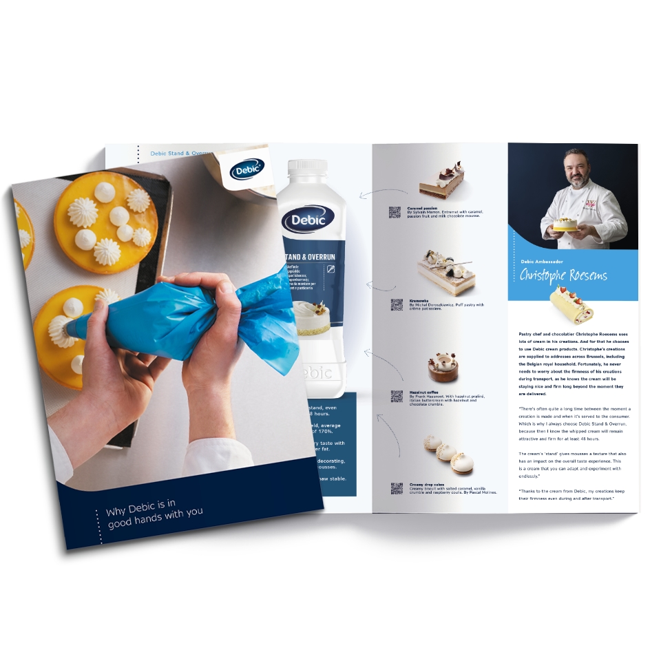 Download the brochure full of inspiration. The brochure includes traditional and modern butter and cream recipes of our culinary specialists and ambassadors such as Christoph Roesems (Wittamer, Brussel, Belgium) and Daniel Alvarez (Dalua, Elche, Spain).