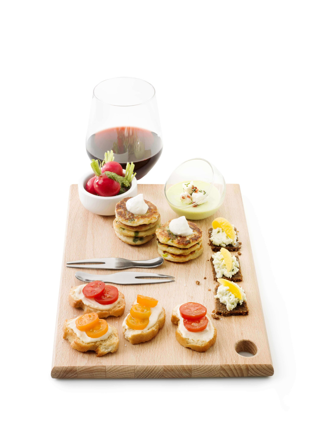 Eliminar la corteza de los quesos. Cortar la chalota en brunoise fina. Mezclar los quesos, la chalota, el vino de Oporto, la mantequilla Tradicional Debic y la Nata Prima Blanca Debic hasta obtener una pasta homogénea. Guardar en el frigorífico. Dejar remojar los albaricoques secos en el vino blanco durante una noche. A continuación cortar en juliana. Servir el queso savoyardo sobre trocitos de pan integral de centeno. Decorar con un poco de albaricoque al vino blanco.