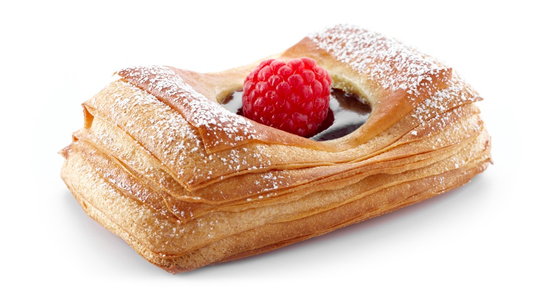 Una receta de bollería rellena con crema de pistacho y frambuesas.