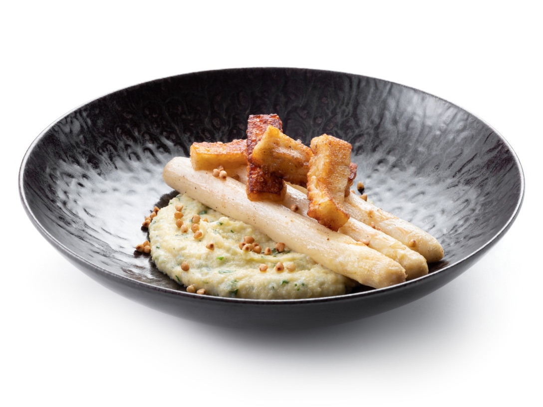 aux asperges grillées, halloumi croustillant et sarrasin croquant
