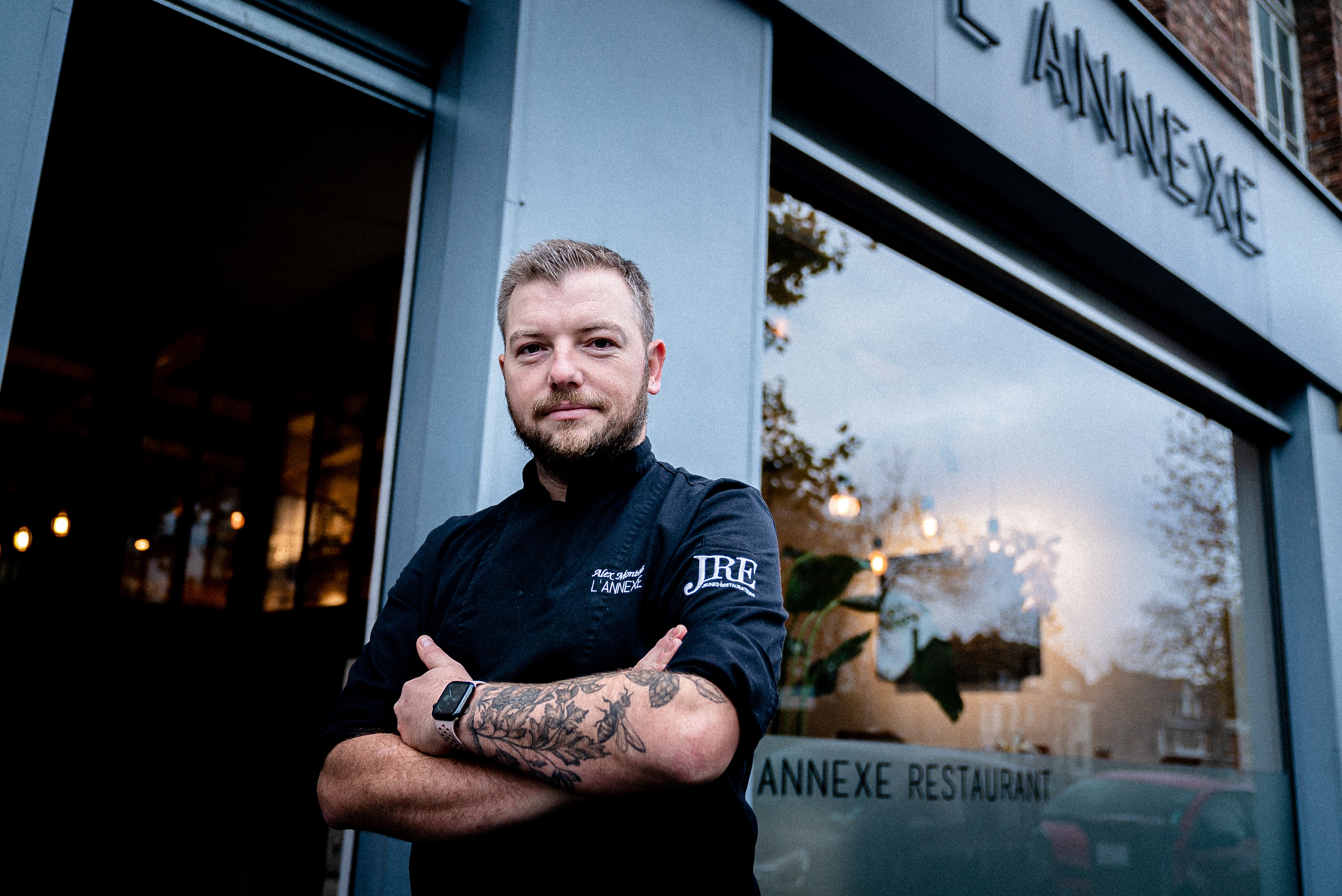 Après avoir goûté à tout pour faire ses armes, ce grand passionné de cuisine est aujourd’hui le chef accompli du restaurant « l’Annexe », crée en 2018 avec Anne-Sophie sa compagne. Une table inventive et audacieuse, devenue en peu de temps la référence gastronomique de la foodsphère lilloise. En 2019, sa curiosité et sa quête de la perfection le pousse naturellement à rejoindre le cercle privilégié des JRE, qu’il apprécie pour les échanges avec les chefs et les événements organisés au national. Rencontre avec un chef aux multiples tabliers, amoureux du terroir et du bien manger, et qui en fait tout un plat.