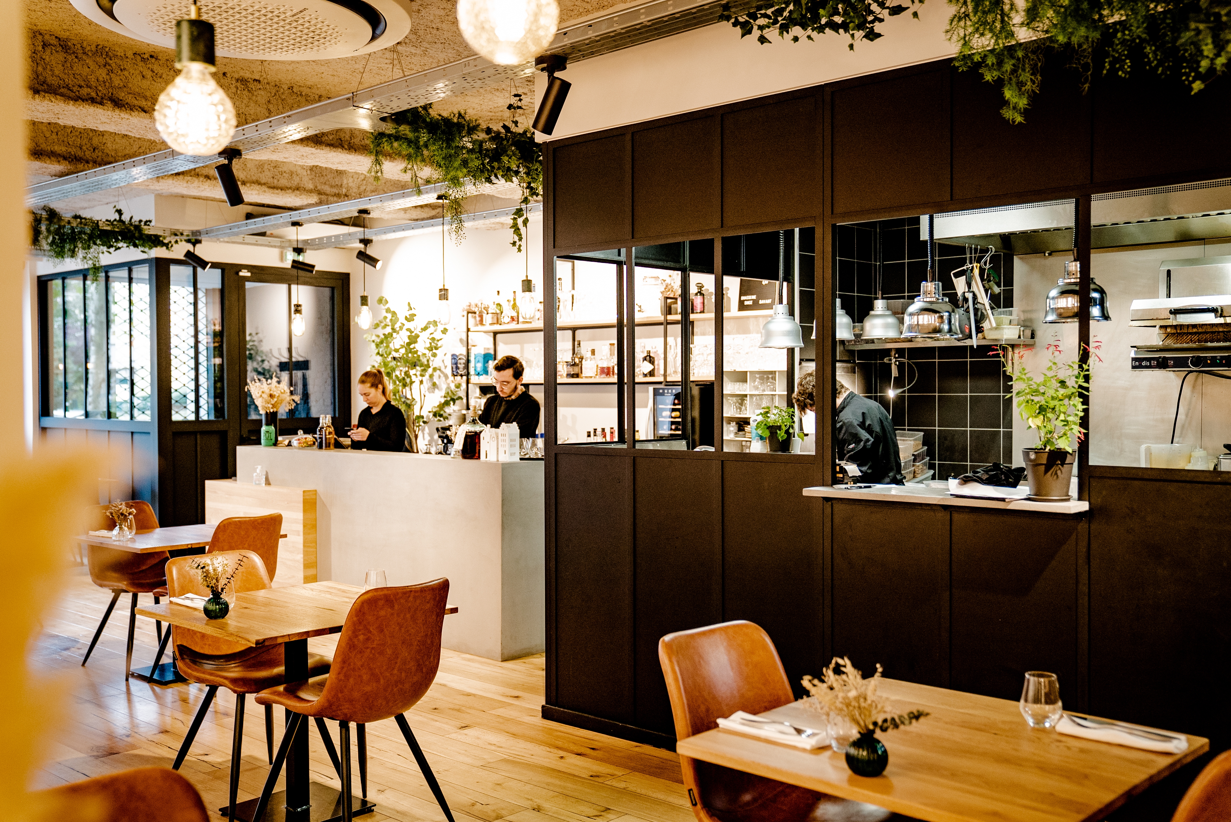 C’est dans une ambiance néo-industrielle, mélange de bois naturel et de métal, aux nuances douces et chaleureuses, qu’Alexandre et Anne-sophie jouent la carte de la transparence avec des produits locaux de saison, travaillés et sublimés dans la cuisine ouverte sur la salle, où chacun peut assister à l’élaboration des plats. Leur philosophie, servir une cuisine créative et goûteuse, en mettant joliment en valeur les produits du terroir, auxquels ils sont très attachés.