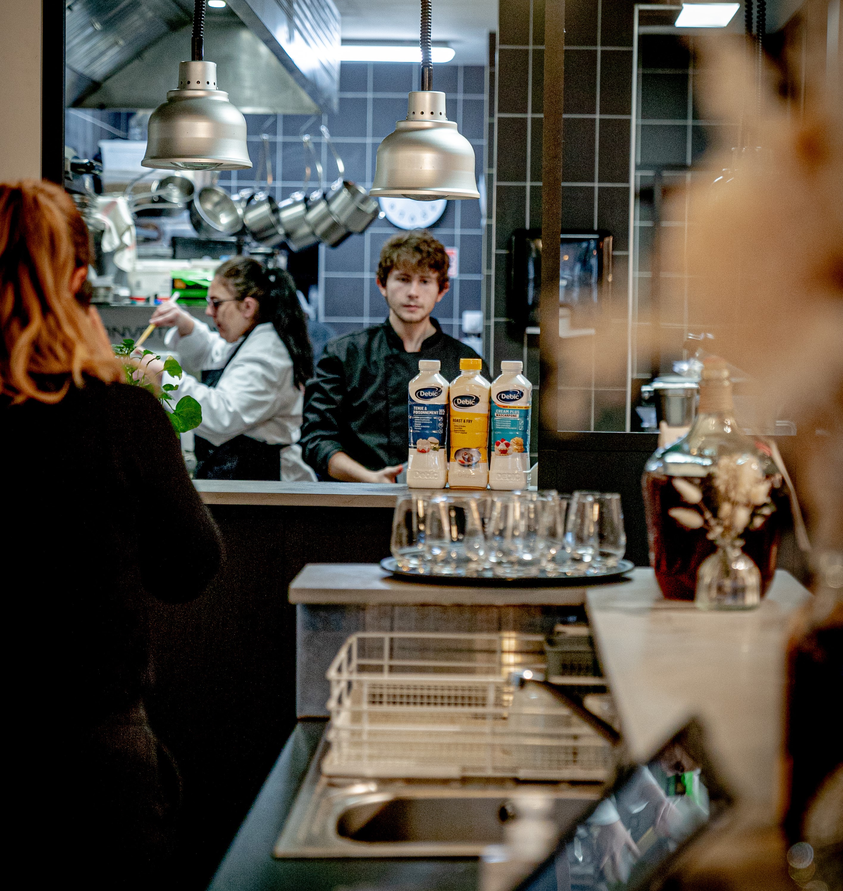 « Ici, on fonctionne par cycles. Les gens qui travaillent avec nous, en cuisine, restent souvent un an, deux ans dans le restaurant pour se former . Puis, ils ont envie de voir ce qu’il se passe ailleurs, pour évoluer. Du coup on a pas mal de turn over mais on ne manque jamais de personnel. Les gens qu’on recrute, ce sont principalement des cuisiniers, car c’est Anne-Sophie qui gère la salle. Ce qu’ils recherchent avant tout, c’est de travailler des produits bruts et de laisser libre court à leur passion, exactement ce qu’on propose ici. On est une petite équipe, l’ambiance est bonne. Tout le monde est impliqué, chacun apporte ses idées, on crée les nouvelles recettes ensemble… bref, on travaille en totale harmonie ! »