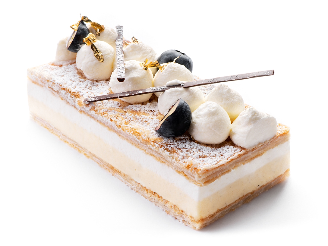 Un gâteau polonais composé d'une pâte feuilletée, de crème pâtissière et de crème fouettée.