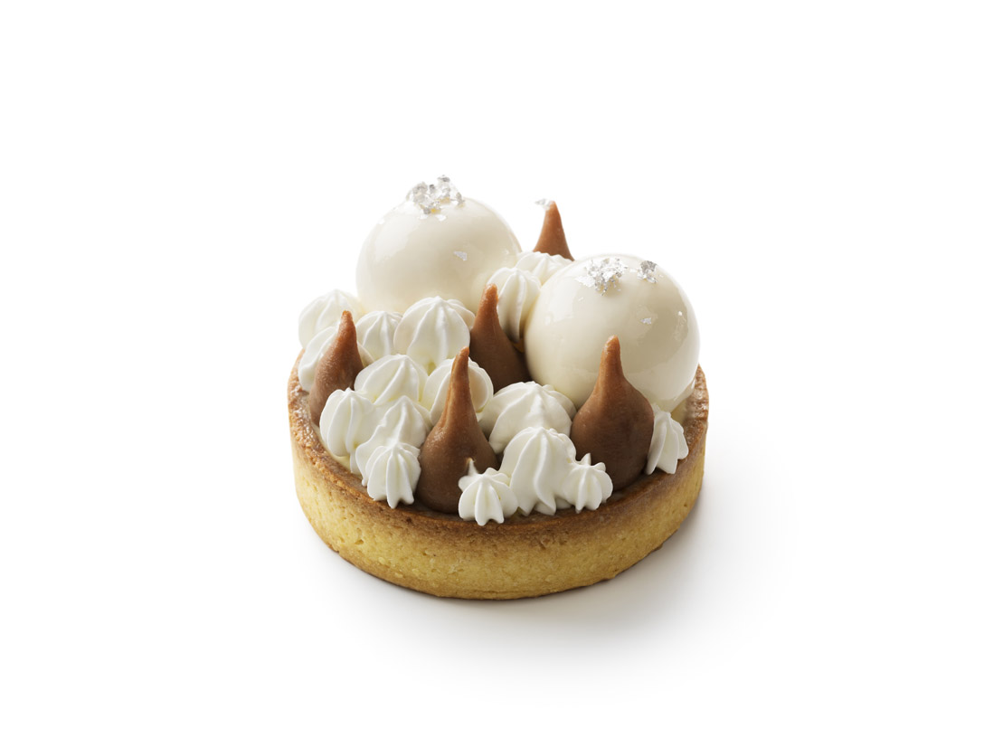 Coprire la mousse al cocco ghiacciata con la glassa bianca e inserirla dentro il tortino.
