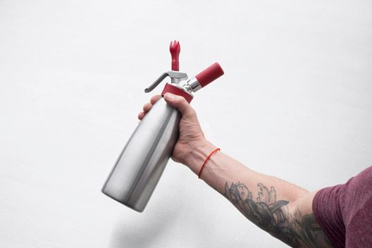 Belucht de sifon met lachgaspatronen (1 liter = 2 patronen / 0,5 liter = 1 patroon)