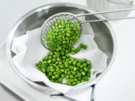 Wyjmij warzywa z zimnej wody i odsącz na sitku.