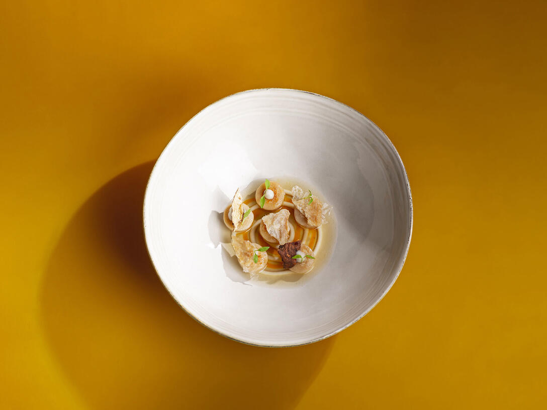 Mouku smíchejte s cukrem a přidejte vodu o teplotě 24 °C. Po 15 minutách hnětení přidejte měkké krémové máslo Debic Traditional Butter a polovinu vaječných žloutků. Po dvou až třech minutách hnětení přidejte kváskový startér a zbytek žloutků. Těsto zpracujte, aby bylo hedvábné a elastické. Dbejte na to, aby se příliš nelesklo (nebylo přehnětené). Proces hnětení by neměl trvat déle než 25 minut. Těsto nechte ve vhodné míse kynout 10 až 12 hodin při teplotě > 26 °C / < 28 °C přikryté celofánem, dokud neztrojnásobí svůj objem.