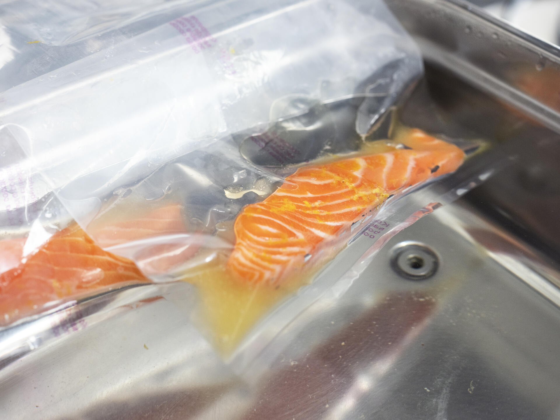 Vložte zavakuovaného lososa do vodní lázně a nechte vařit.