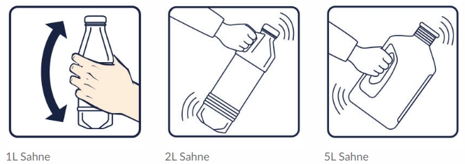Um beste Ergebnisse zu erzielen, bitte die Sprühsahne vor Gebrauch maximal 2- bis 3-mal schütteln.