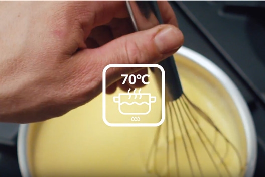 Crème Brûlée unter ständigem Rühren erhitzen.