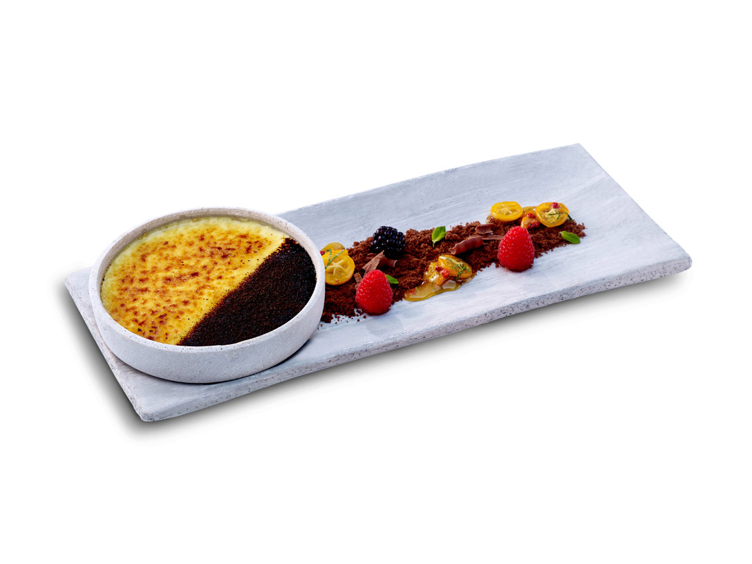 Crème Brûlée | Biskuit Schokolade | Portwein | Waldbeeren