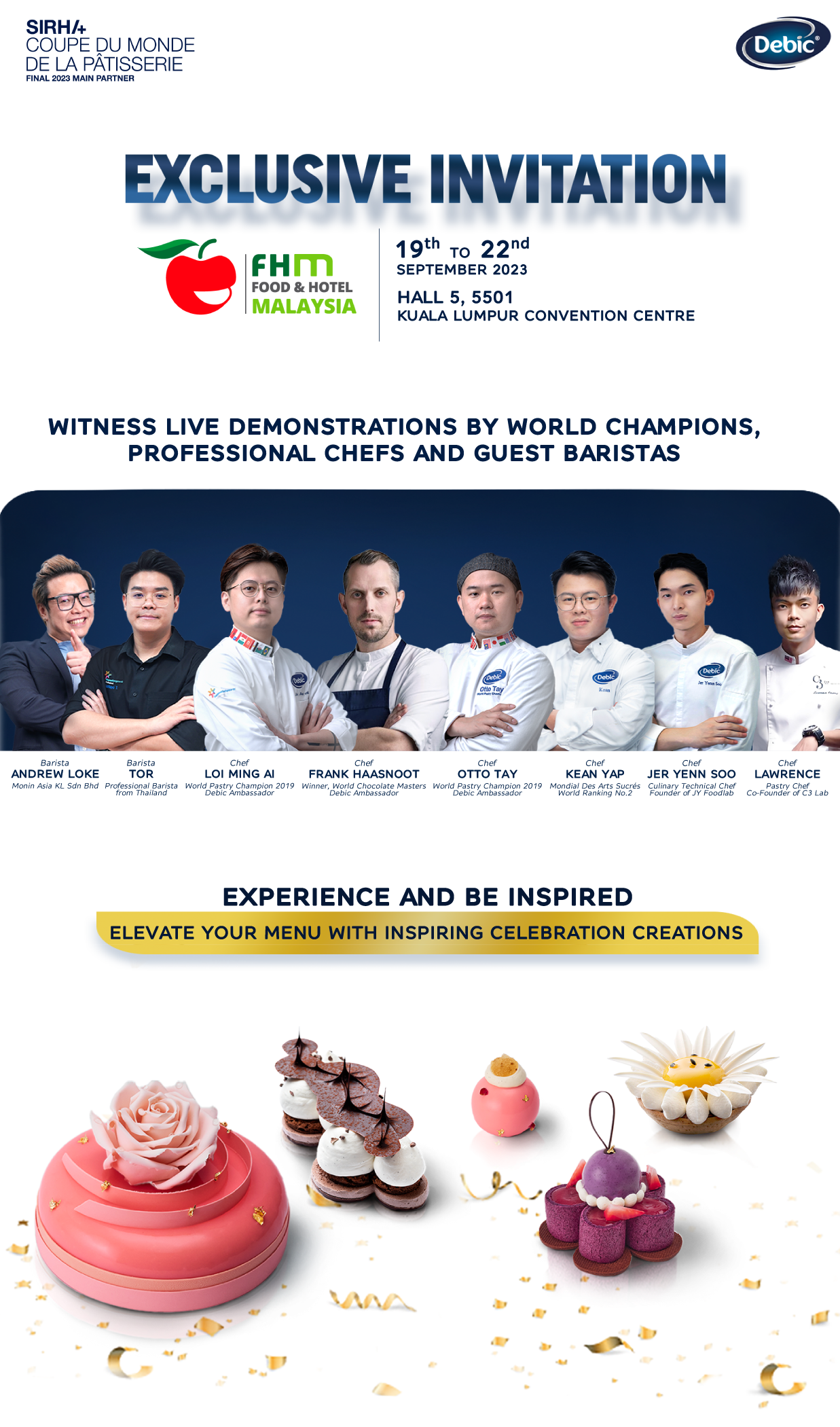 Join us at Food & Hotel Malaysia 2025 for a showcase featuring pastries made with Debic creams and bar takeovers with Dutch Lady Professional dairy solutions.