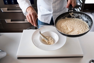 Luca was originally a pâtissier who became a chef only later in his career. Both professions are close to his heart: "I think that cooking and making pastry are a passion, a sentiment. You have to feel what you’re doing with your heart, and with your sense of taste. But I also love to study and do research. I need an understanding of the technical nature of the material that I’m using." His cooking style is clear: reinventing the classics. And although he thinks the Italians must take care not to lose their traditions, he is not afraid to break some of them himself – when it comes to using a little cream in risotto, for instance…