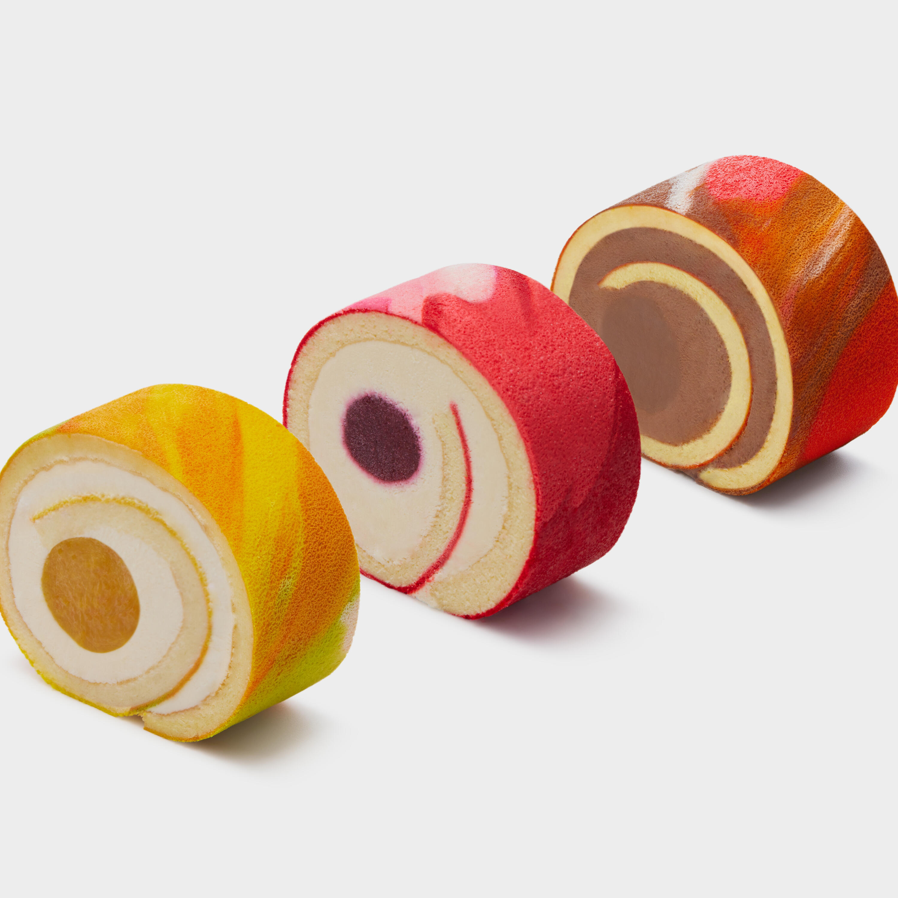 Explore Frank Haasnoot’s trio of Swiss rolls with global flavour twists.