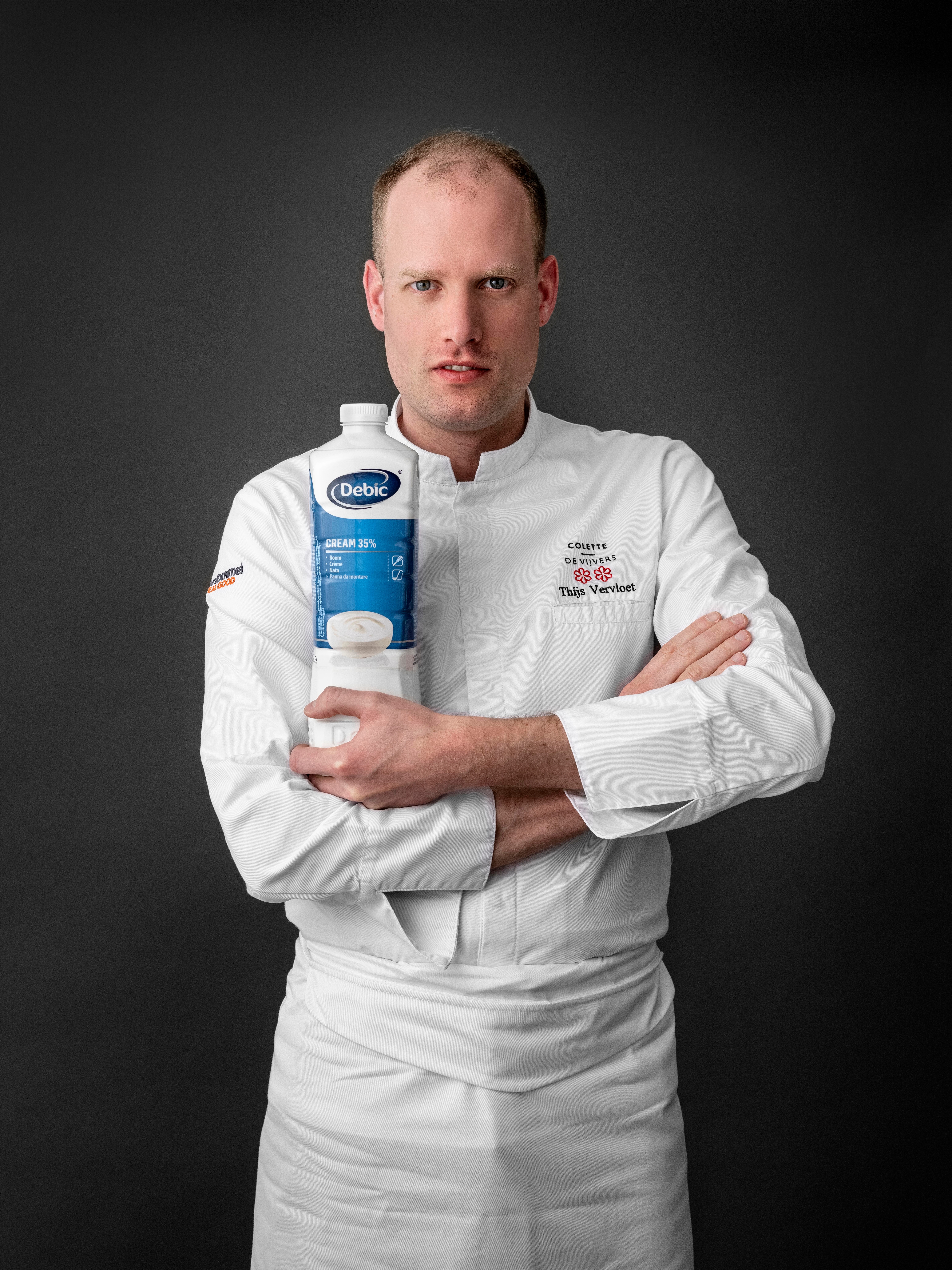 Thijs calls himself a classic, French, nostalgic soul. And that means he can’t cook without butter or cream. ‘They are the most important products in our kitchen: they form the basis of all our recipes. Kilos and litres of butter and cream are a must! Without this, I can’t even get started.’ Because of the modern twist in his dishes, Thijs often replaces rich sauces with consommé, made with vinegar, to keep his dishes a little lighter and fresher. Nonetheless, Debic’s cream flows profusely in his kitchen. ‘We use cream with 40% fat for sauces, and cream with 35% fat for pastry preparations and mousse. One of the things we make with butter is our puff pastry brioche.’ Thijs was delighted to become a Debic ambassador. ‘I love a sustainable, local story. And I have a great appreciation for our farmers. Without farmers, we wouldn’t be able to run a restaurant: people sometimes forget that. I also appreciate the efforts of a cooperative like FrieslandCampina. Therefore, I’m happy to endorse a Belgian, sustainable product that comes from our cows. And which, in our kitchen, produces perfect, consistent and reliable results.’