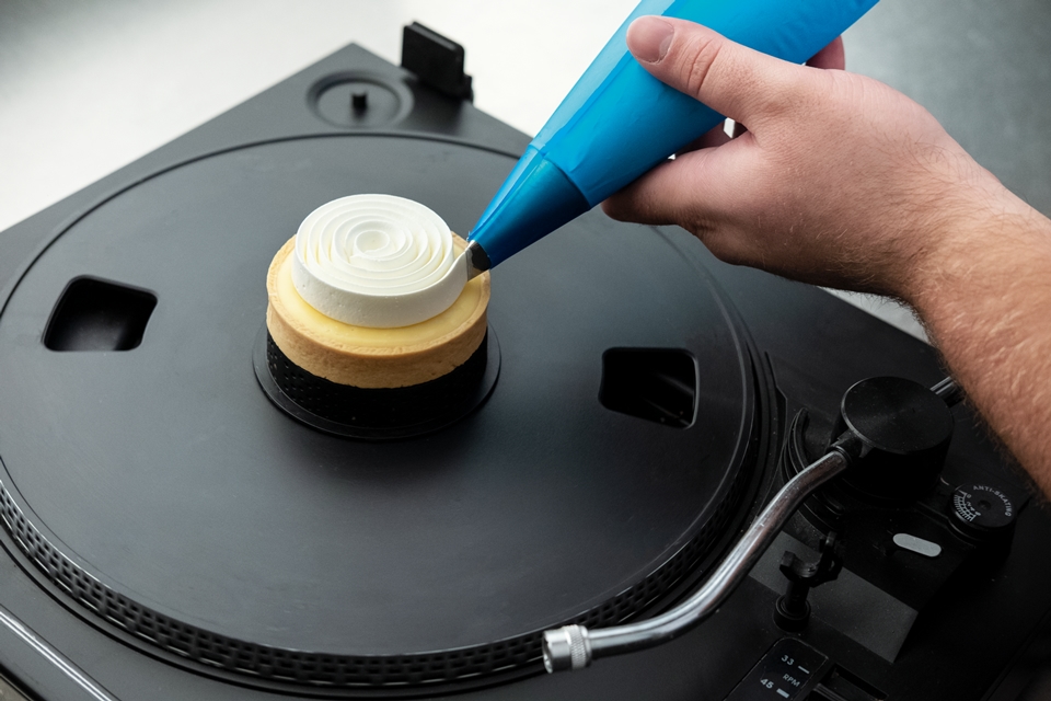 Method: Place the tartelette precisely in the centre of a turntable. Keep the piping bag stable and make a slow movement, while the tartelette rotates at medium speed. Start in the middle and work outwards. Keep a constant pressure on the piping bag, so that the cream is evenly distributed.