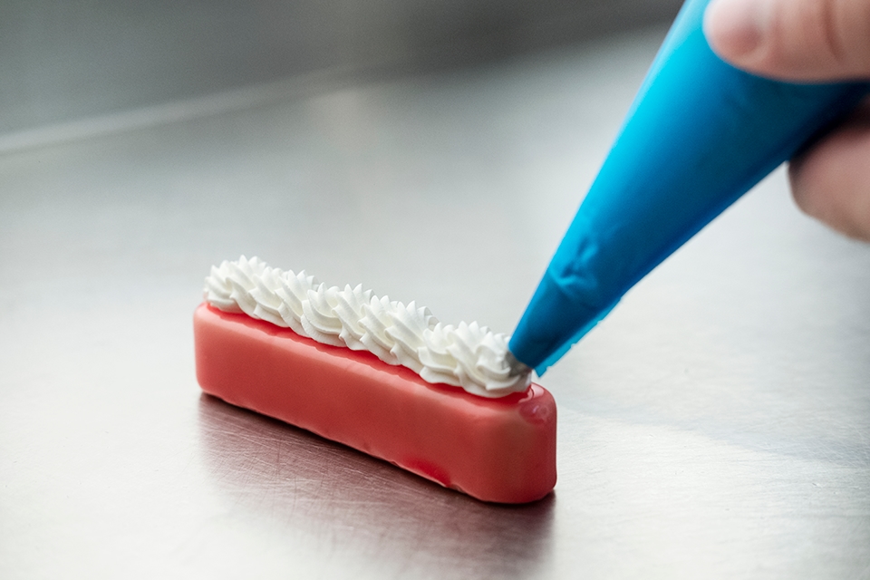 The appearance of your range is the best way to stimulate and seduce. At the Coupe du Monde de la Pâtisserie in Lyon, we were left in no doubt that the creative teams were committed to using traditional handwork techniques in their creations. Piping bags and various nozzles had made a comeback. On stage at major patisserie competitions, we are also seeing colourful and fresh glazes that exude freshness, creativity and professionalism. Fortunately for the consumer, this technique is constantly being refined in order to put more focus on the flavour. The days of having a thick, sticky and often overly sweet layer of jelly in your mouth after the first bite are definitely behind us.