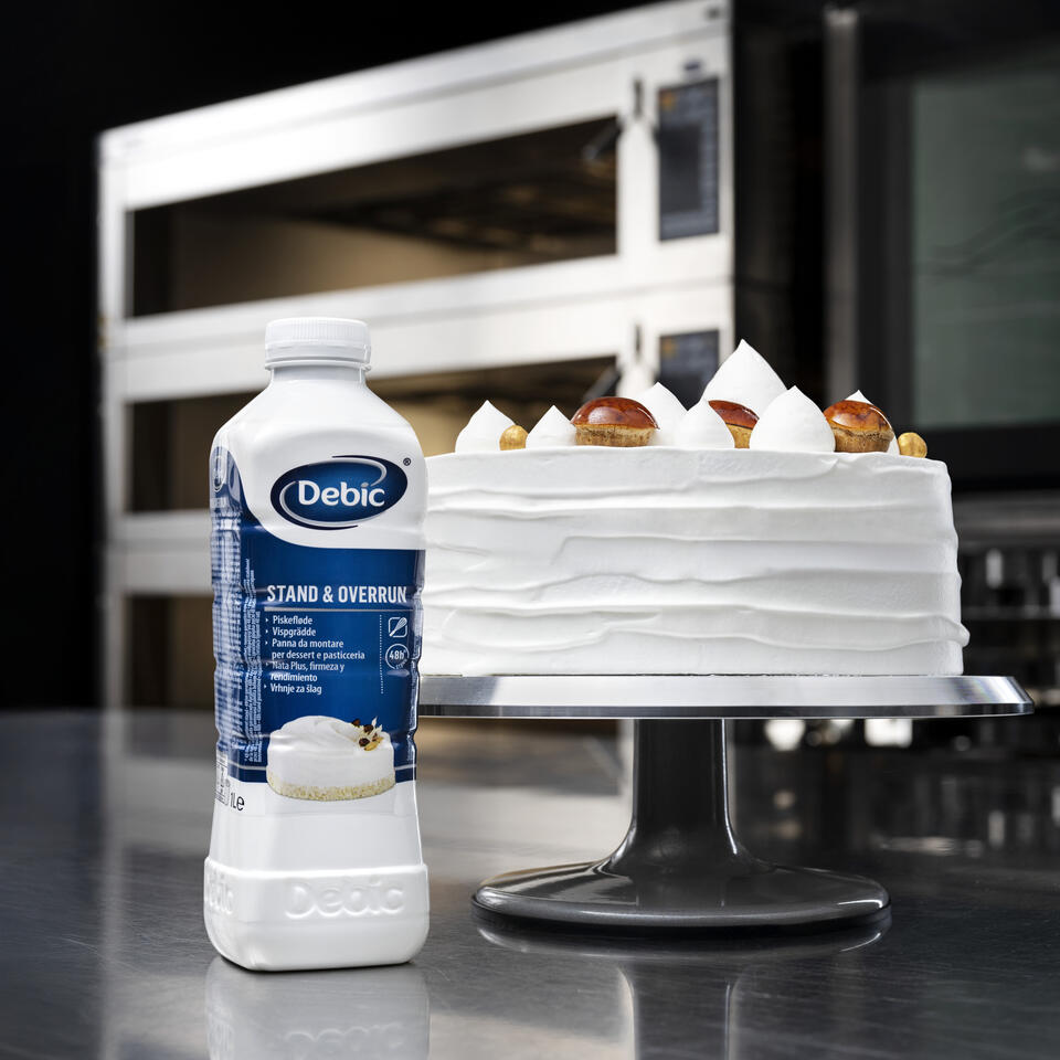 Discover our Debic Stand & Overrun, a perfect combination of firmness and airiness. This makes it the ideal cream for decorating cakes, pastry and ice cream and a perfect base for mousses, bavaroises and fillings.