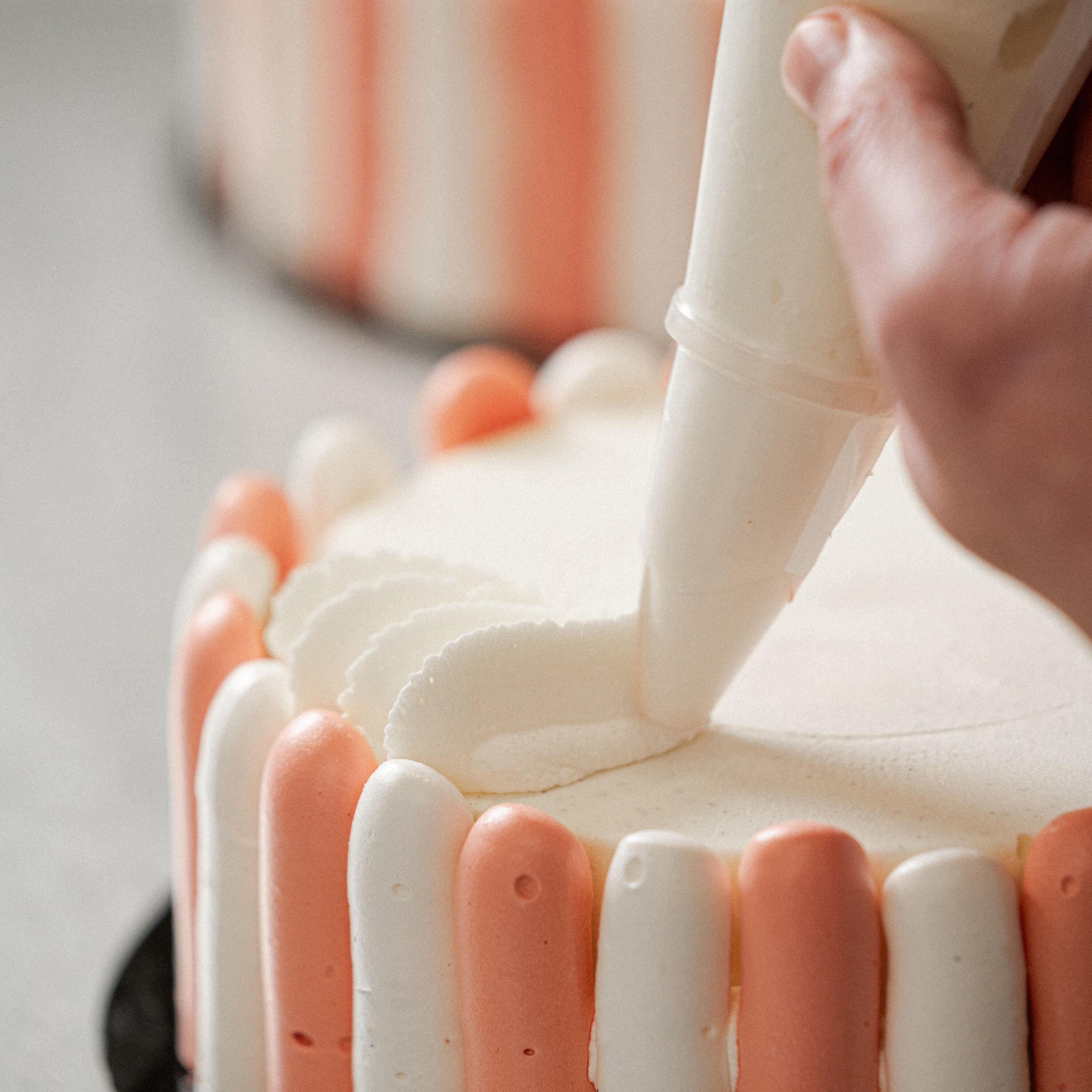 ‘I love giving the classics a modern twist’, says the French pastry chef. ‘That blend of tradition and modern is also reflected in my store – a modern façade with a warm, inviting interior. The delicious pastries sometimes evoke childhood memories, other times they surprise me with new flavours and original designs.’ One of his favourite classic desserts is the vacherin, a layered meringue and ice cream cake. ‘There are endless possibilities for decorating this cake, which to me is a truly elegant classic. For this, I rely on Debic’s whipping cream: it pipes flawlessly, with a silky texture and a beautiful, white colour. The cream also holds its structure well, even when displayed in the shop for longer periods or when decorating multiple cakes at once. If you’re piping cream onto thirty ice cream cakes in a row, you don’t want the first one collapsing before you finish the last!’