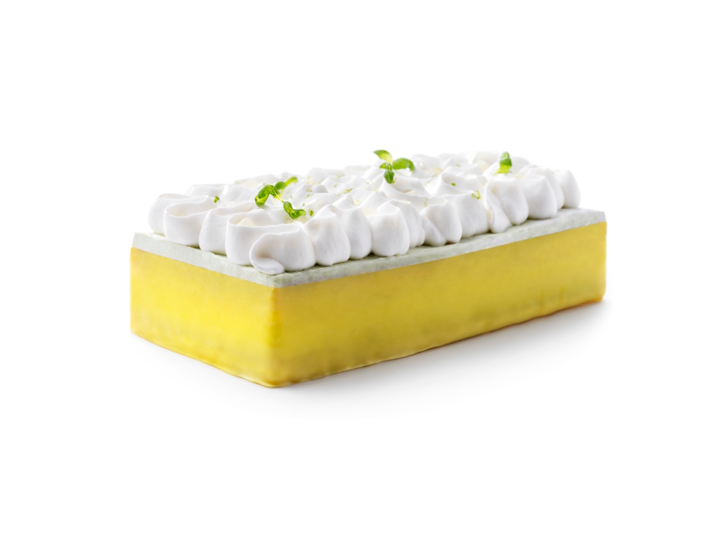 Dip the cut cake in the yuzu chocolate mixed with 10% grape seed oil.