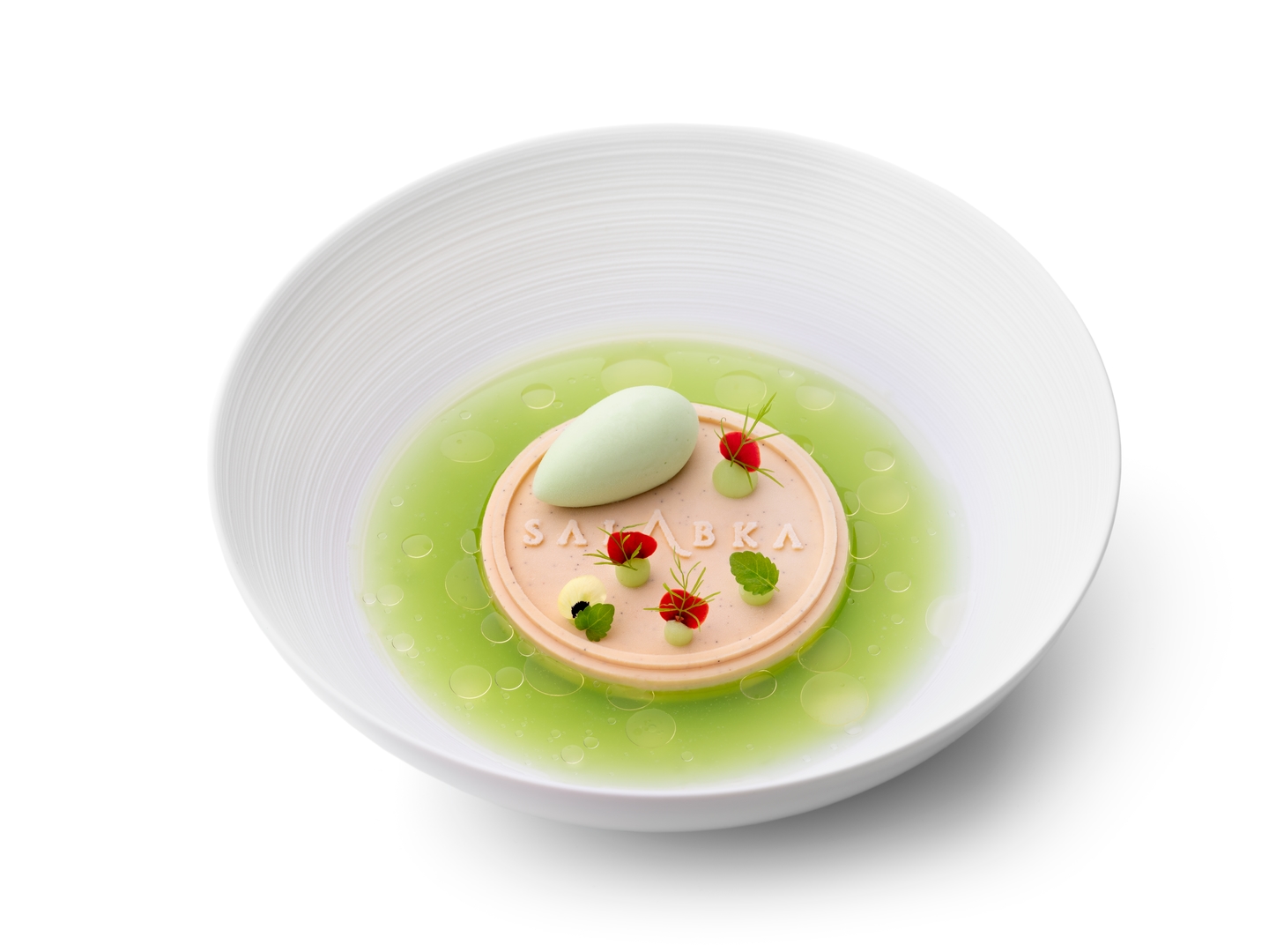 Petr Kunc admits that he does not really have a signature dish. Nonetheless, he feels that his dishes are very recognisable. "I cook modern, European dishes and love French and Italian influences. I prefer to buy local, seasonal ingredients wherever possible." If there is one thing he learned from his time working for VIP catering company Rhubarb in London, where he prepared dinners for Buckingham Palace, Kensington Palace, Windsor Castle, the Borussia Dortmund football team and celebrities including Elton John, Louis Vuitton, Donna Karan, and Valentino, it is that food not only has to taste sublime, it must look fantastic as well. "You eat with your eyes too." So it is no surprise that this dessert with green apples looks picture perfect.