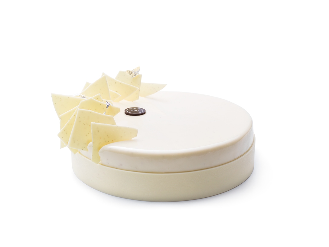 Mélangez la gélatine en poudre avec l’eau (1) et laissez tremper. Mélangez l’eau (2), le sucre et le glucose et portez à ébullition. Versez sur le chocolat le lait concentré sucré et le miroir neutre et mixez en mélange lisse. Faites fondre la masse gélatineuse dans le glaçage. Mixez-y en dernier lieu le colorant blanc et les grains de la demi-gousse de vanille. Laissez complètement refroidir. Réchauffez à 35°C avant l’utilisation.