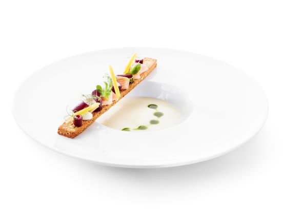Coupez la betterave rouge en fines tranches et roulez celles-ci en petits rouleaux.