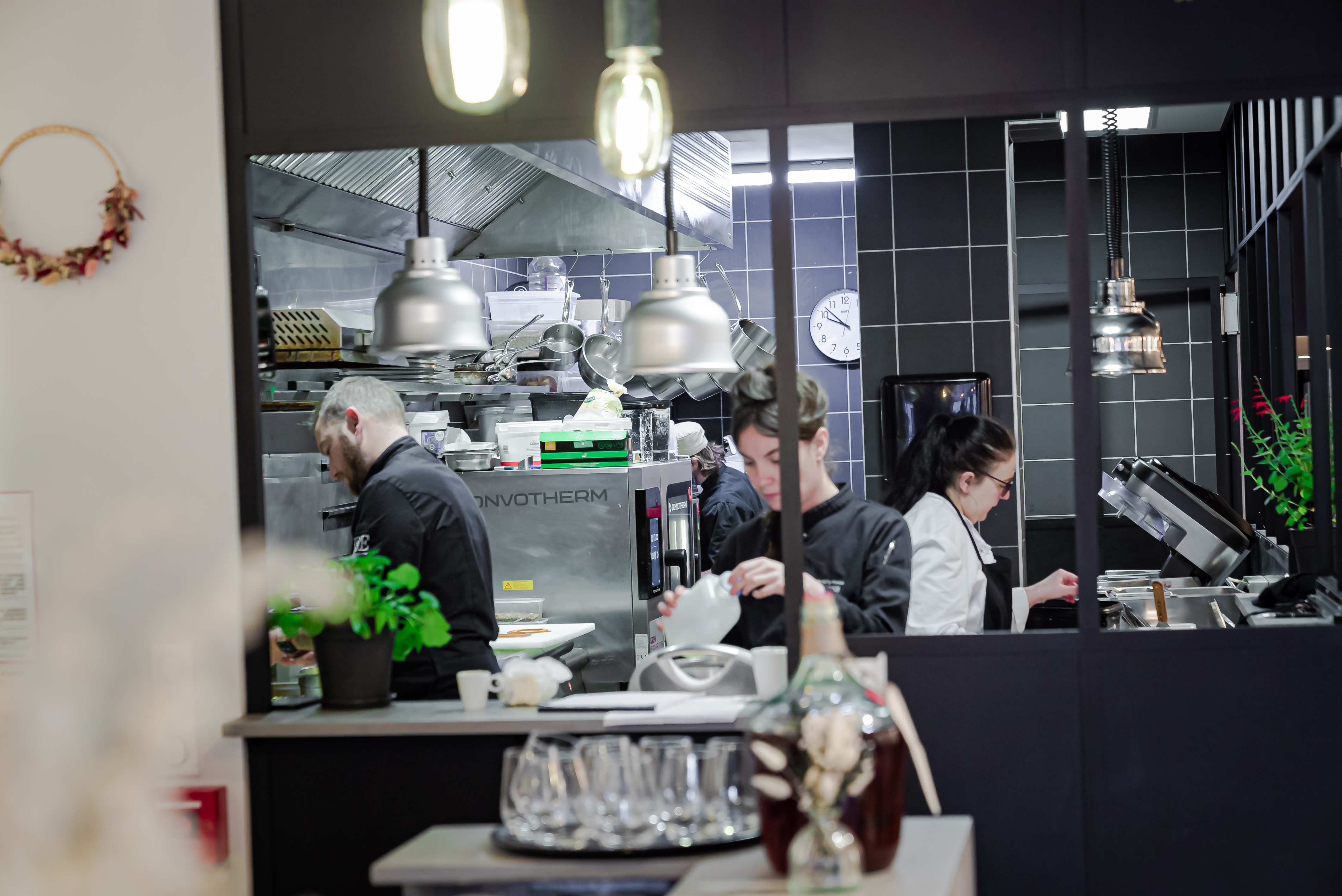 C’est dans une ambiance néo-industrielle, mélange de bois naturel et de métal, aux nuances douces et chaleureuses, qu’Alexandre et Anne-sophie jouent la carte de la transparence avec des produits locaux de saison, travaillés et sublimés dans la cuisine ouverte sur la salle, où chacun peut assister à l’élaboration des plats. Leur philosophie, servir une cuisine créative et goûteuse, en mettant joliment en valeur les produits du terroir, auxquels ils sont très attachés.