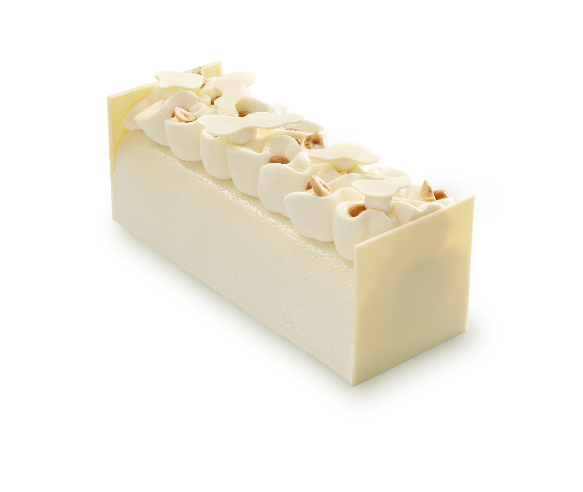 Pulvérisez la bûche de nappage neutre puis de beurre de cacao blanc.