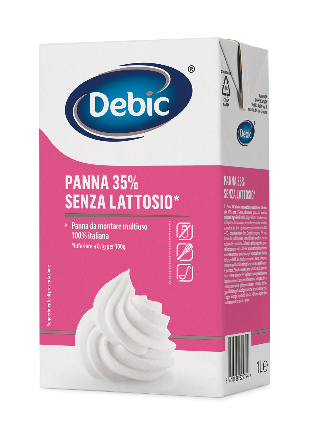 Senza lattosio, ma anche senza compromessi, grazie alla nuova Debic Panna 35% Senza Lattosio: strutturata, cremosa, piacevole.