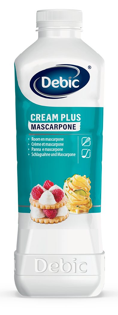 Cream Plus Mascarpone Debic, un mix di panna e mascarpone, pronto all'uso, perfetto per impreziosire piatti dolci e salati. Semplice e veloce da usare, avrai più tempo per essere creativo