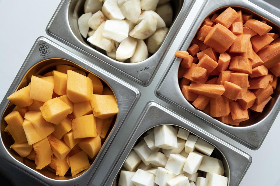 Als we de druk, en dus de temperatuur, tijdens het koken verhogen, en ook de pH-waarde verhogen door zuiveringszout toe te voegen, kunnen de groenten tot in de kern karamelliseren zonder dat ze uitdrogen. Door deze techniek in de snelkookpan te gebruiken, kunnen we nieuwe smaken creëren voor het maken van groentepuree, die op zijn beurt kan dienen als basis voor bijvoorbeeld vegetarische soepen en groenteroomsoepen.