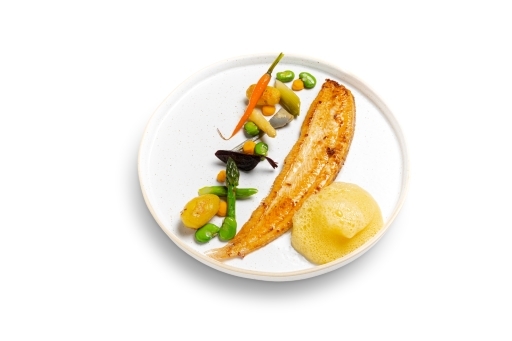 FOCUS: Zet het hoofdingrediënt in de kijker en bouw je gerecht verder op rond dit punt. De regel van drie is een belangrijke hulp. Verdeel het bord zowel horizontaal als verticaal op in drie lijnen en plaats de belangrijkste componenten op de snijpunten van die lijnen.