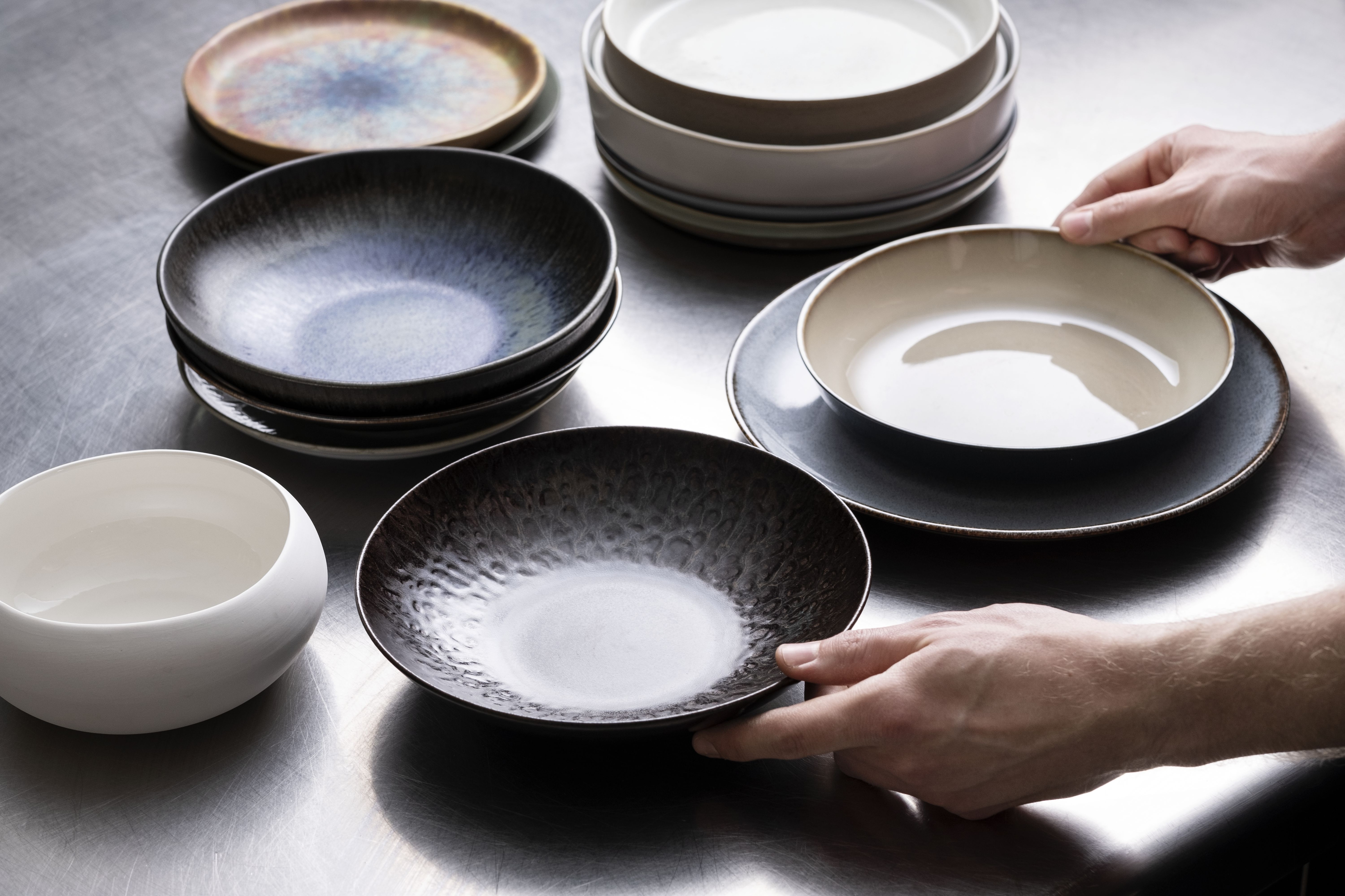 De keuze van het bord is ook van belang, maar niet per se belangrijker dan het gerecht zelf. Speel met vorm, kleur en diepte om het perfecte evenwicht te vinden.