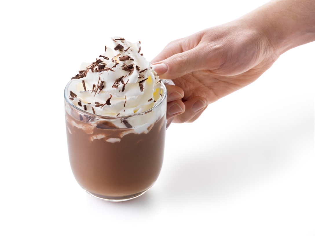 Serveer de chocolademelk in de winter uit een koffiekan rond de 75-80 ˚C.
