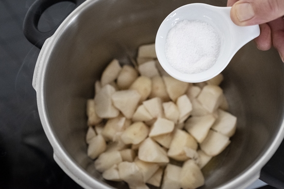Doe de Debic Bakken & Braden in de pan, verwarm en voeg vervolgens de gesneden aardpeer toe.