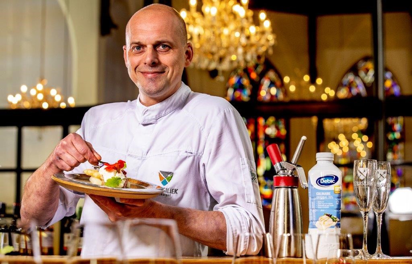 Op hoogtijdagen kookt chef-kok Jan van der Kooi van restaurant Baylings in Leeuwarden voor maar liefst 380 gasten. Dat kan alleen als je slim kookt. De desserts bereidt hij dan ook met de roomproducten van Debic.