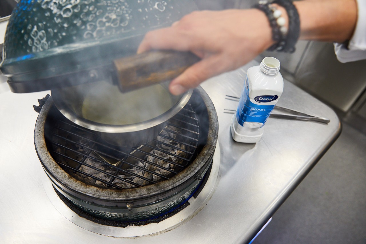 Culinair adviseur van Sligro Sietse Blummel en culinair adviseur van Debic André van Dongen hebben samen in het ZiN inspiratielab de Big Green Egg binnenstebuiten gekeerd en een heerlijk rokerig én lekker romig barbecueconcept ontwikkeld. Met als resultaat: diverse culinaire bereidingen, technieken en gerechten voor op de barbecue die zowel in de gastronomie als thuis kunnen worden bereid.