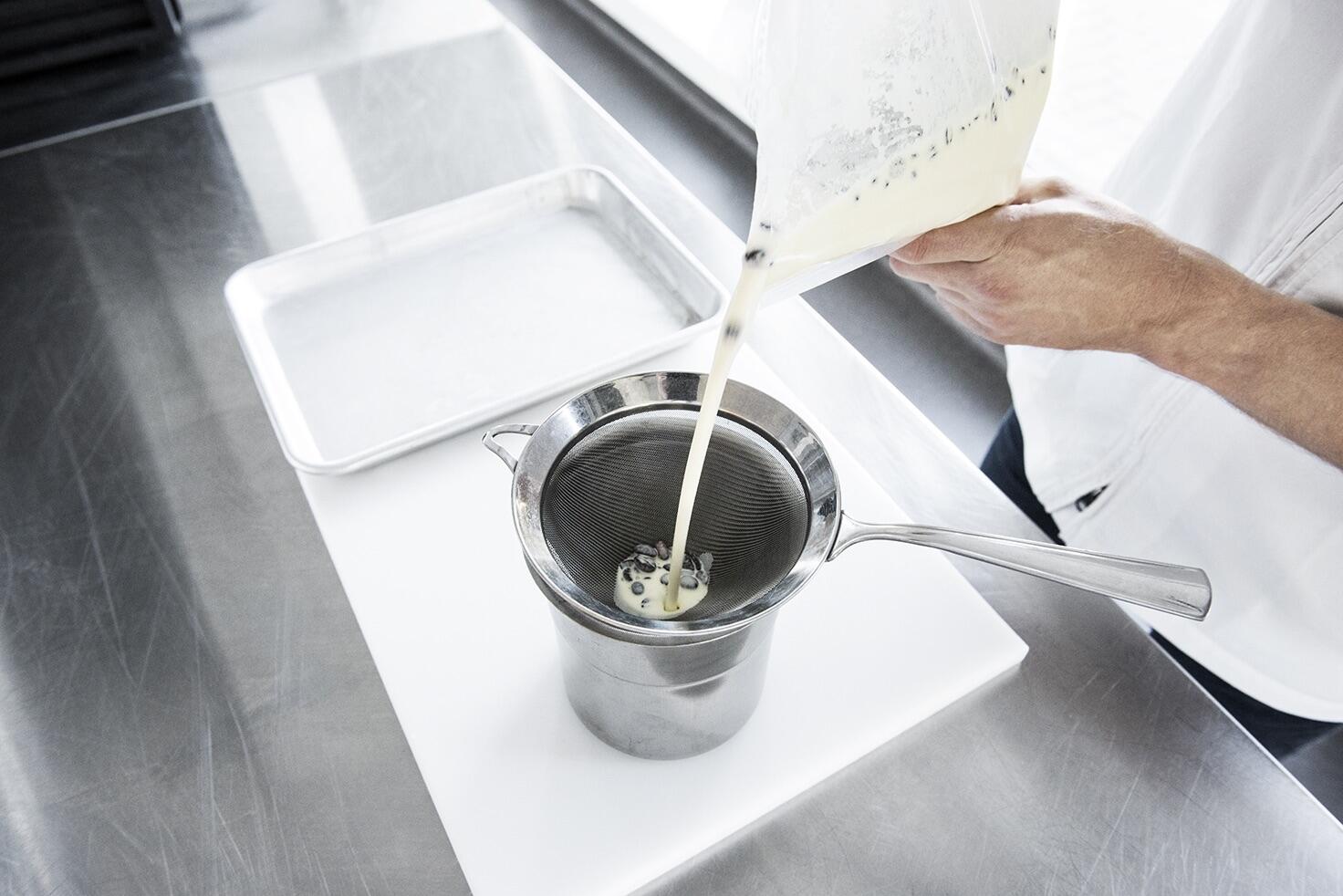 Het spectaculaire van deze techniek is dat je een verse crème fraiche maakt met een hoog verrassingselement. Doordat je de crème infuseert, blijft deze wit van kleur, zodat er aan de buitenkant van het product niets te zien is. De smaak wordt onthuld wanneer je de crème fraiche eet. Denk aan bijzondere smaken zoals gerookt spek, koffie of dashi.