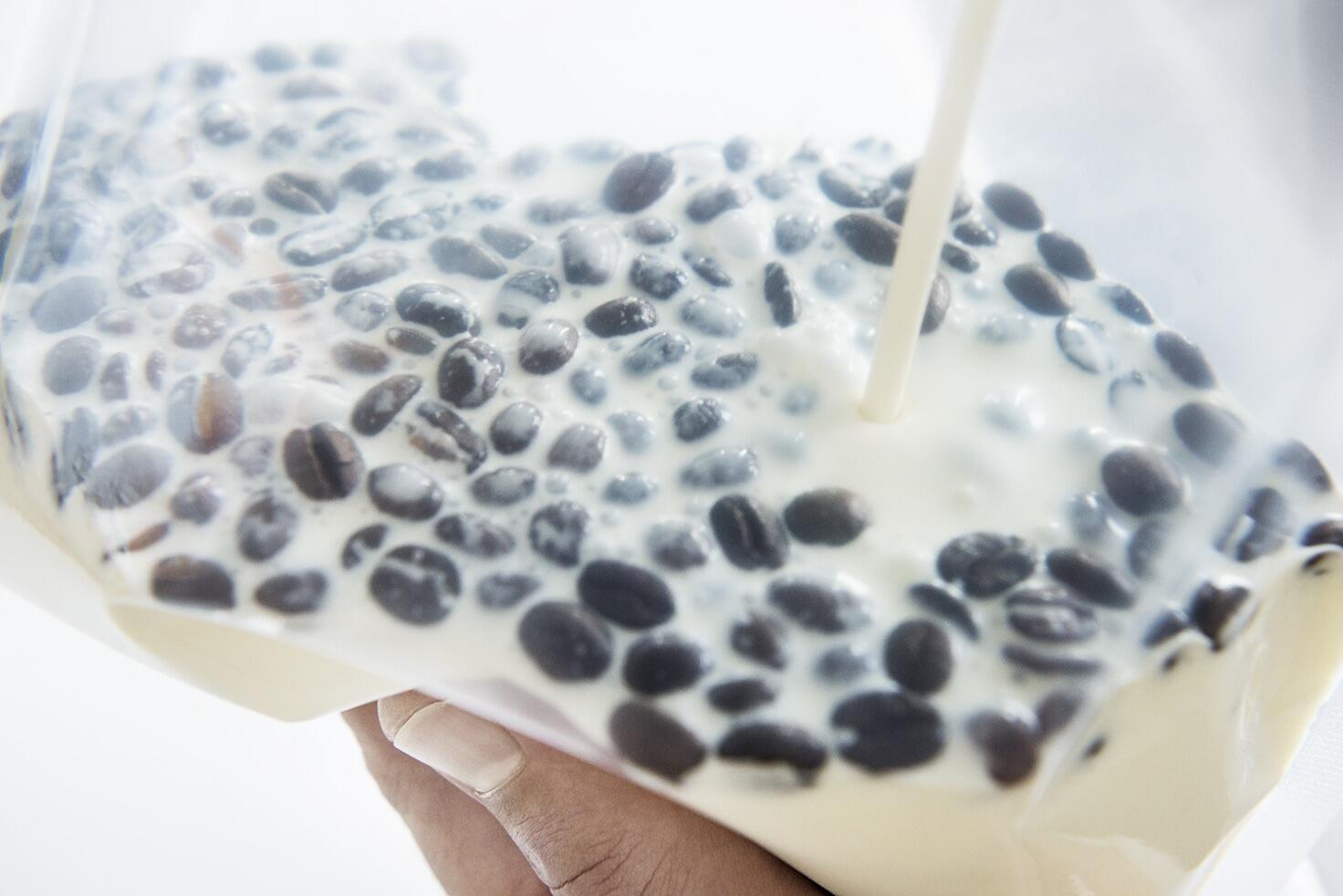 Meng de 'Debic Slagroom 35% zonder suiker' met de ingrediënten (hier gebruiken we koffiebonen als voorbeeld) en laat het 24 uur koud trekken in een vacuümzak, zodat de room alle aroma's goed kan opnemen. Voeg vier eetlepels karnemelk per liter room toe, roer kort en dek af met een kaasdoek of stevig keukenrolpapier. Dit laat lucht door, maar niets valt erin. Passeer de room door een fijne zeef. Zet de slagroom 24 uur bij 25°C in een gistkast, droogkast of op een warme plek in de keuken. Koel daarna terug naar 4°C. Je kunt de crème fraiche bijvoorbeeld gebruiken in soepen, sauzen of desserts. De creme fraiche laat zich goed opkloppen vanwege het hoge vetpercentage van 35%.
