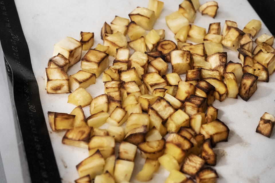 Het roosteren van groente geeft een heel specifieke smaak. Door de directe warmte van de oven krijgen de suikers nog meer de kans om te karamelliseren waardoor de kleur, geur en smaak van de groente veranderen. De pastinaak wordt zoeter en krijgt een karamelsmaak en -kleur