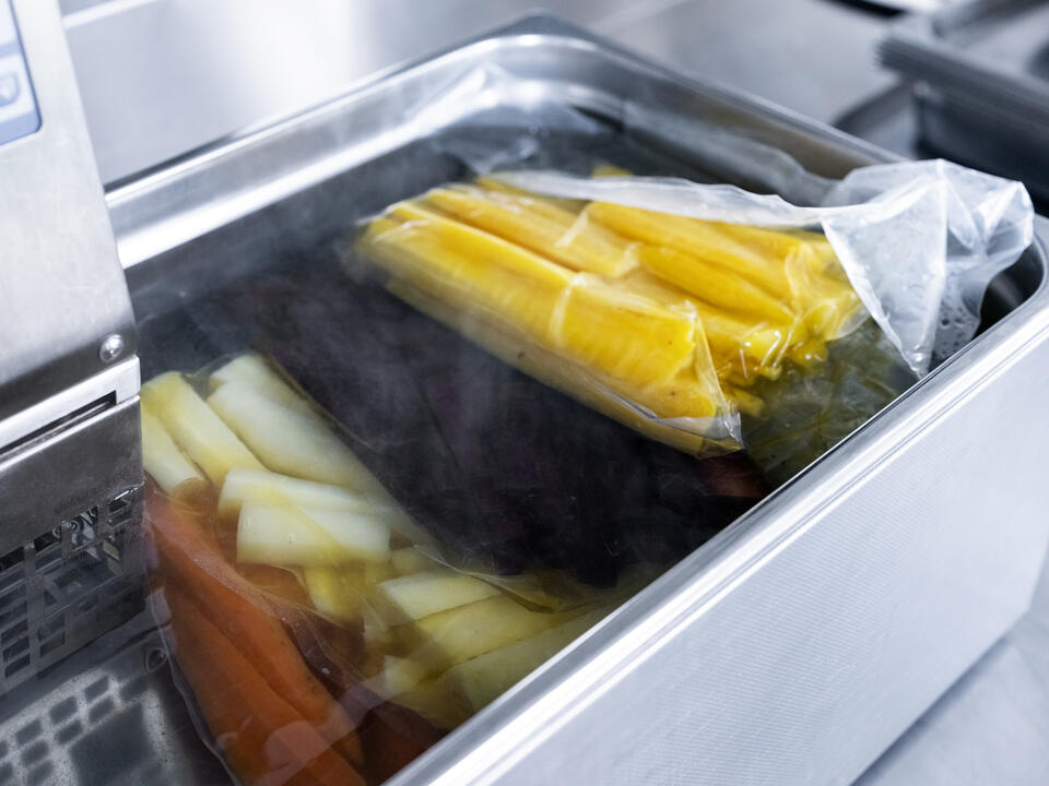 Vacuüm garen van harde groente zoals bijvoorbeeld wortels. Het voordeel van deze techniek is dat alle smaken in het product behouden blijven. Gaar de wortels op 85 °C gedurende 1 uur.