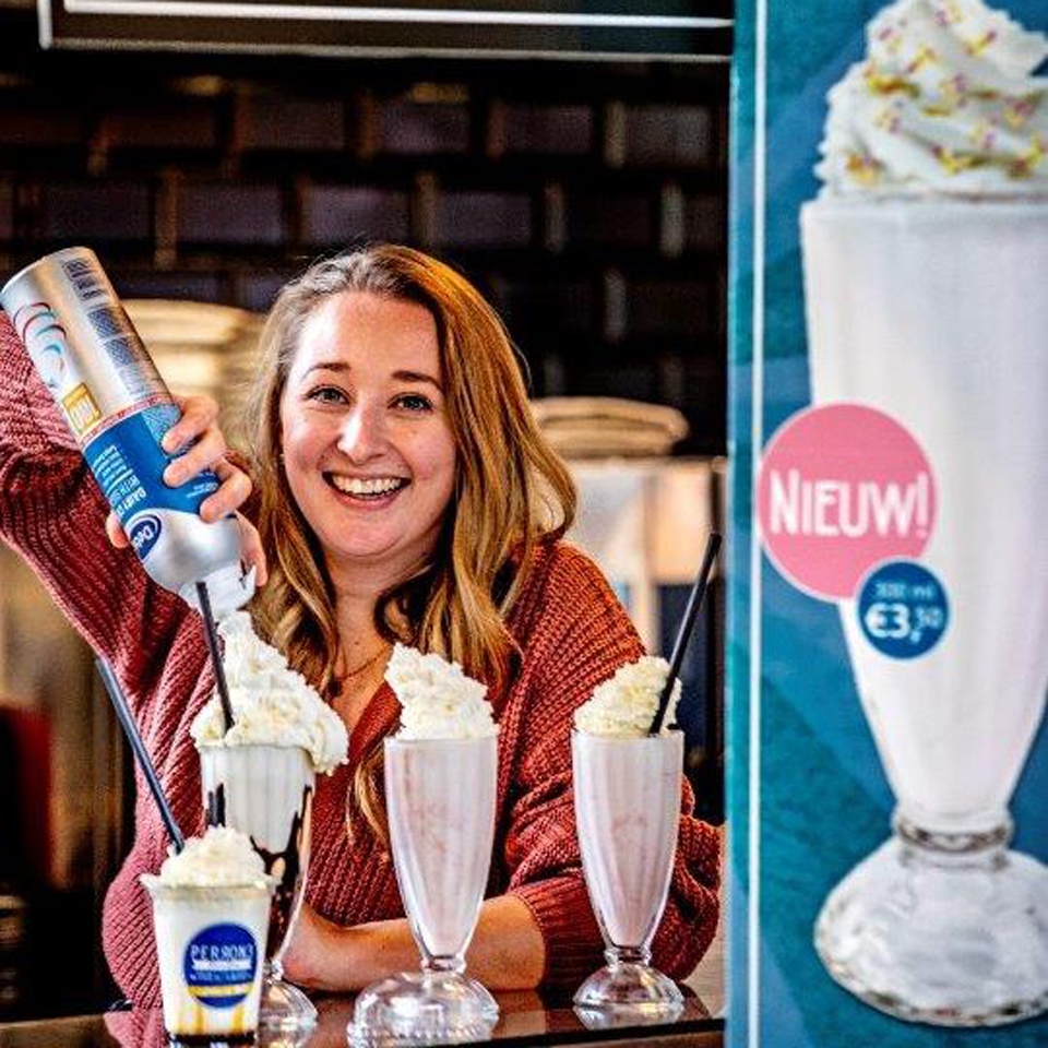 Collega Jessica Clarisse staat iets verderop, in de ‘milkshake corner’. “De populairste milkshakes to go? De Strawberry Crush en Vanilla Dream afgetopt met slagroom doen het supergoed, zelfs in de winter.”