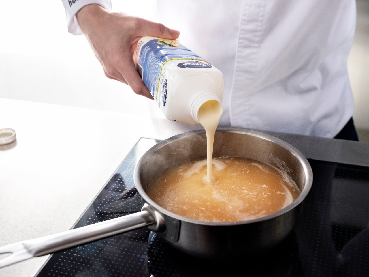 Wanneer een saus glanst ziet deze er smakelijker uit en geeft een mooi contrast als je een mat bord gebruikt. De glans krijg je door te emulgeren met koude boter. Door het gebruik van kookroom van Debic gaat je saus niet schiften. Zelfs niet in de bain-marie! Ook het afkoelen van de saus is geen probleem door het emulgerende effect van de Debic kookroom. Teruggekoelde sauzen opwarmen? Emulgeer even met een staafmixer en je bent klaar.