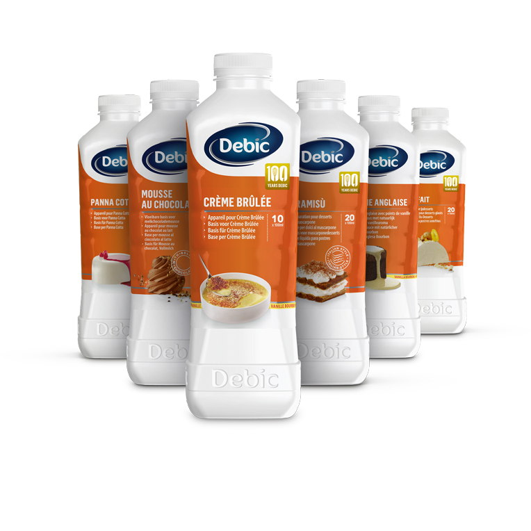 Debic heeft een breed scala van handige dessert basissen om je gasten mee te verrassen, zoals tiramisu en crème brûlée.