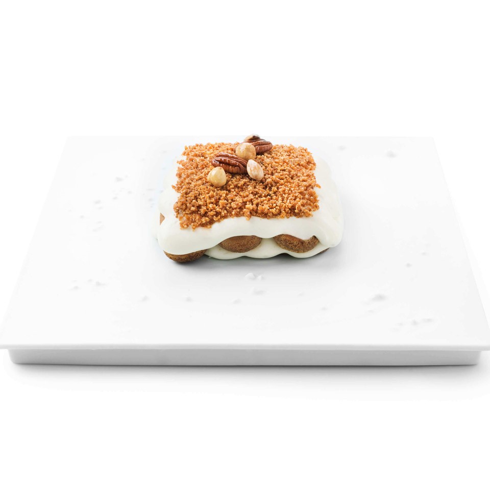 Een notentiramisù met gekaramelliseerde noten, een dessert om je vingers bij af te likken.