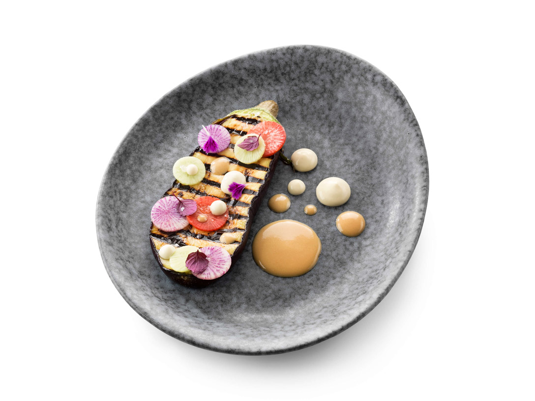 Maak een gastrique door de witte wijn samen met de sjalot, de sakéazijn, de kruiden en specerijen in te koken tot 1/3.