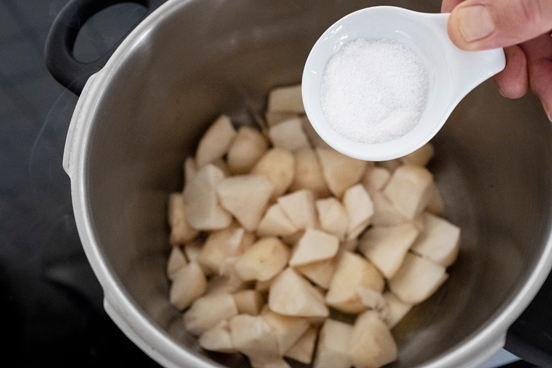 Voeg de Debic Bakken & Braden in de pan, verwarm en voeg vervolgens de gesneden aardpeer toe.